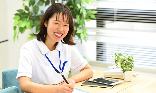 週に2~3回、オフィスに看護師さんが訪問し、ご利用者さんの症状に合わせて、日々の体調管理から痛みの軽減、服薬管理や生活習慣予防の相談、点滴や注射などの医療措置も対応していただいています。